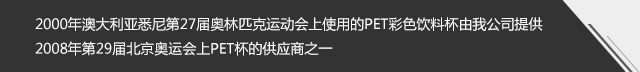 1994年公司從美國、瑞士引進當時最先進的生產PET產品流水線,正式開始專業生產PET系列產品。通過20多年的不斷探索和發展,市場遍布五大洲六十多個國家和地區,與世界很多知名企業和品牌建立了友好合作,,如星巴克、DQ、迪士尼、農夫山泉、蒙牛、百威啤酒等。公司現有若干條流水線,幾十臺各類生產機組,年生產能力可達12億套以上,形成了完整的集設計、制造、生產、銷售與服務為一體的專業運行體系。